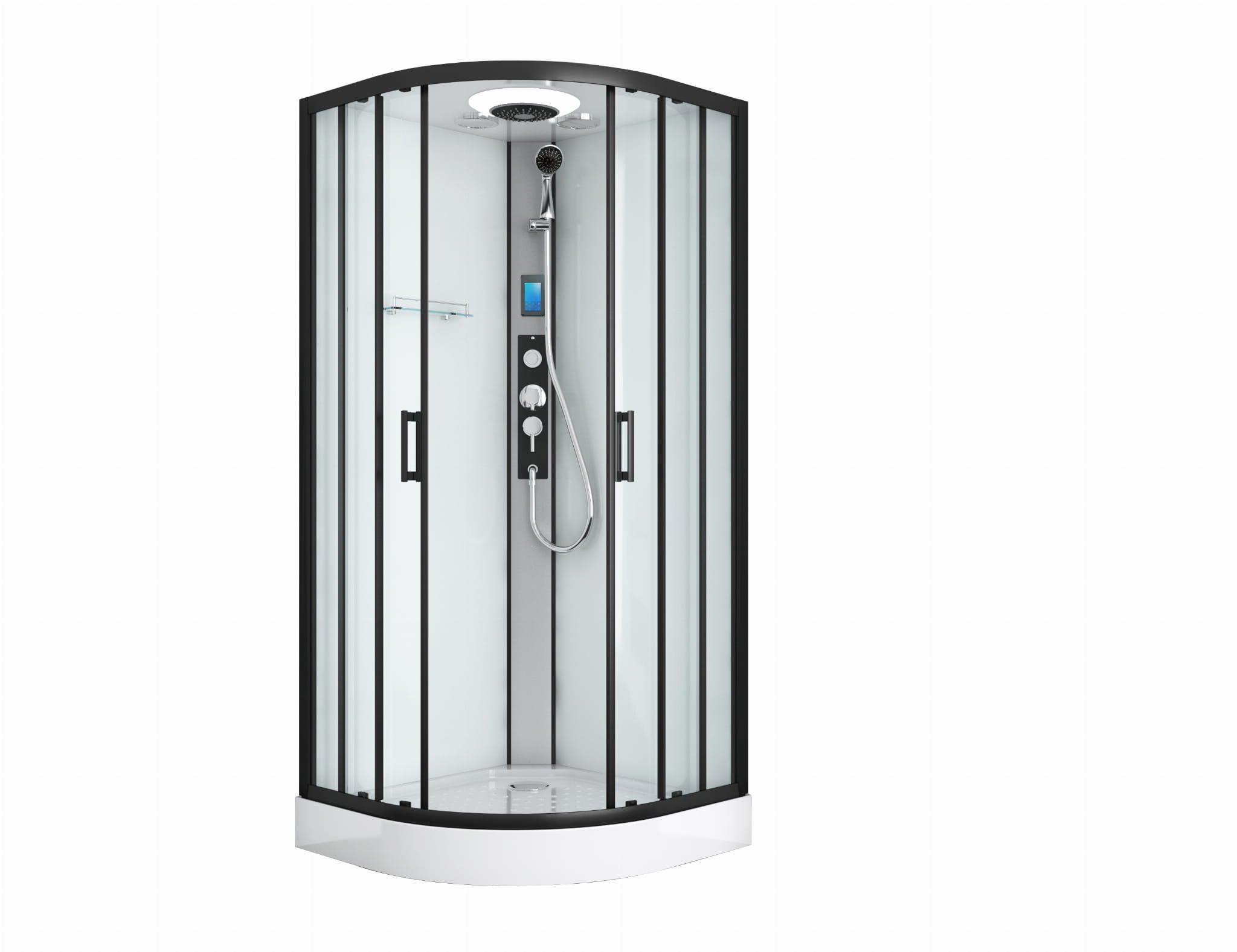 Nasz produkt jest kompletnym zestawem, który posiada wszystkie niezbędne elementy potrzebne do zamontowania w pełni funkcjonalnej kabiny prysznicowej