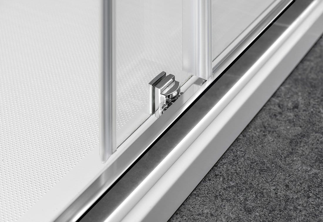 - Kwadratowe i prostokątne kabiny z wejściem narożnym, stworzysz łącząc dwoje drzwi przesuwnych w wejście narożne