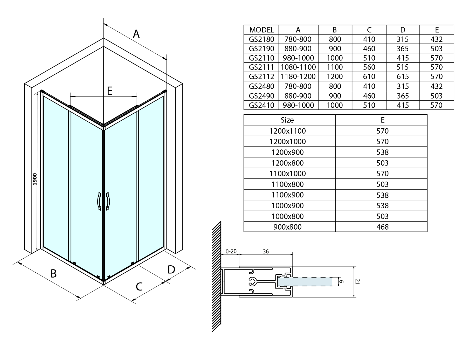 - Łącząc ścianę boczną i drzwi otrzymujesz prostokątną lub kwadratową kabinę - do wyboru drzwi przesuwne i obrotowe