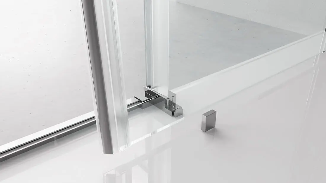 - Szkło w drzwiach jest swobodnie zawieszone bez dolnego profilu prowadzącego