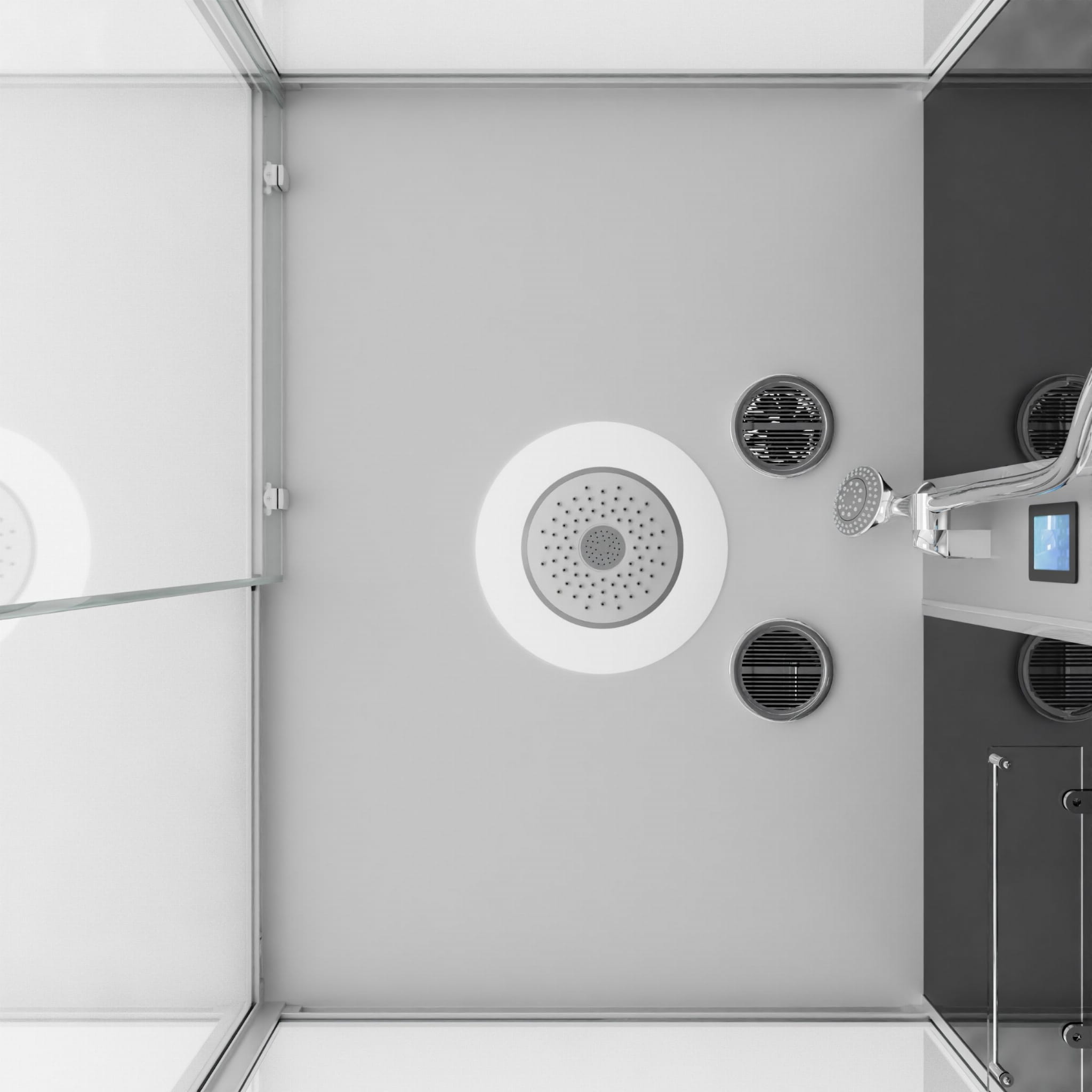 • dach z oświetleniem LED i głowicą prysznicową