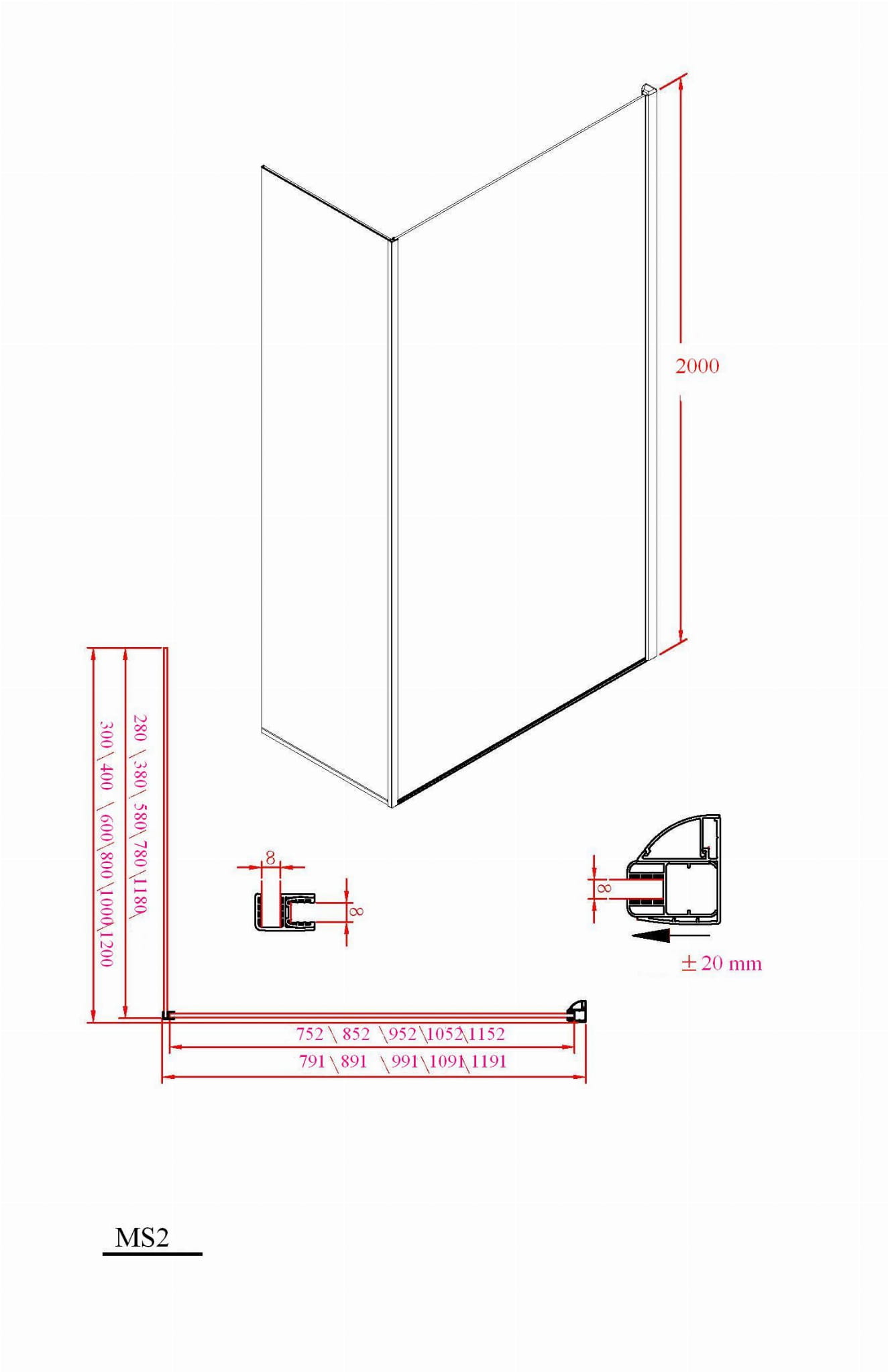 - wymiar montażowy ścianki stałej montowanej do ściany MS2A100: 976-996 mm