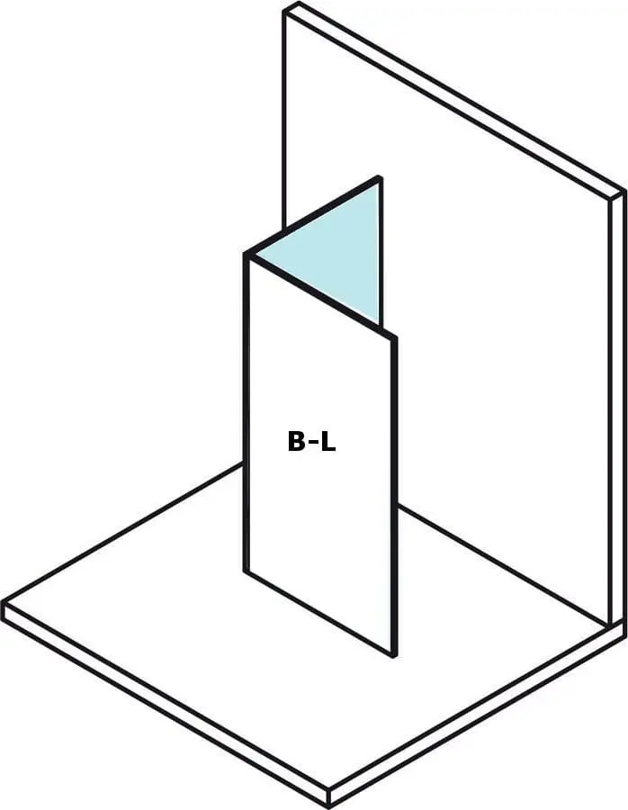 Kabina modułowa typu WALK IN typu L, składająca się z dwóch ścianek, podstawowej (montowanej za pomocą profilu do ściany) oraz ścianki dodatkowej (montowanej do ścianki podstawowej z wykorzystaniem profilu narożnego):