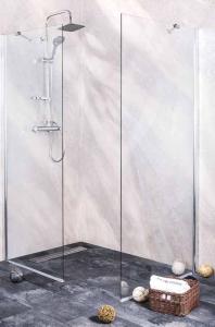 Kabiny "Walk-in", to otwarte kabiny z przestronnym wejściem, zestawione z dużych tafli szkła.