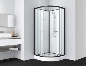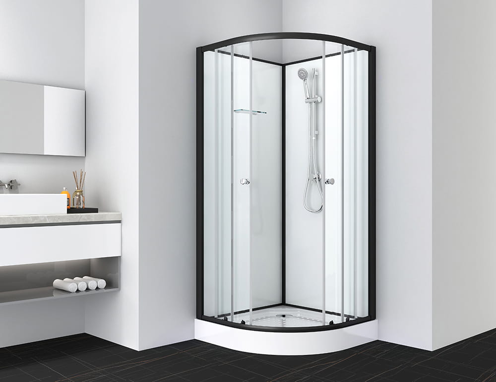 Kabina wolnostojąca z czarnym, matowym profilem.