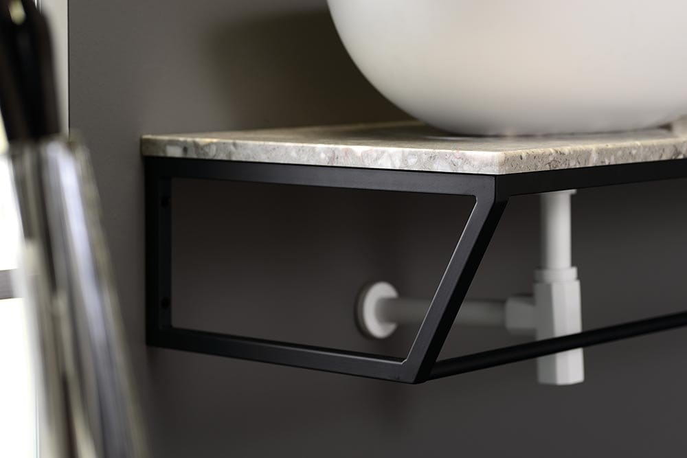 Konsola pod umywalkę do powieszenia w kolorze czarnego matu wykonana ze stali.