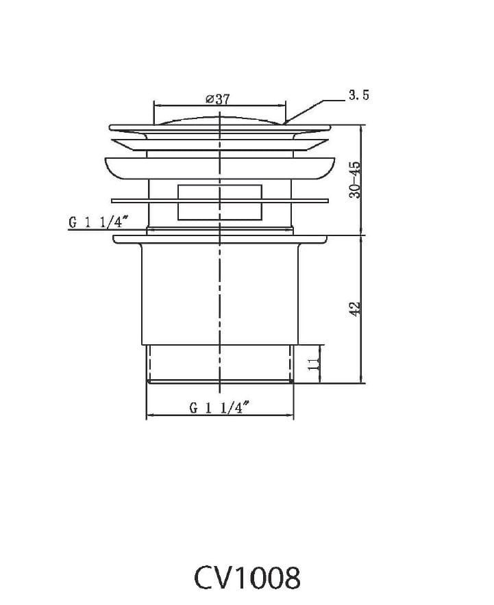 Korek koloru mat o rozmiarze gwintu 5/4" do umywalek z przelewem o grubości 30-45 mm. Korek posiada system klik-klak. Średnica grzybka 37 mm.