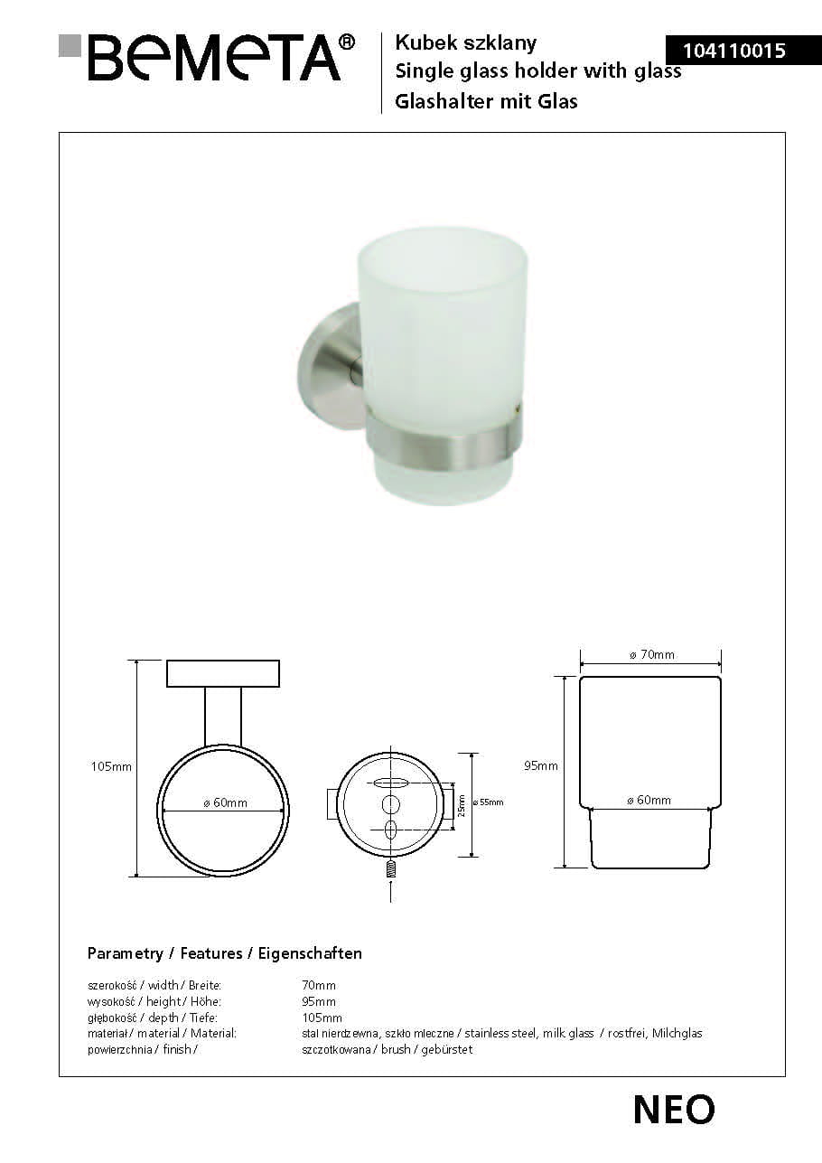 Kubek szklany NEO 104110015 Bemeta wymiary
