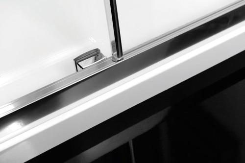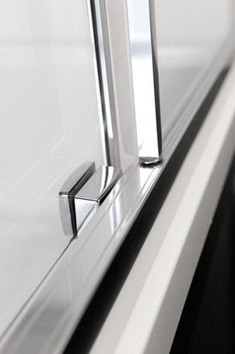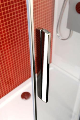 Szkło z powłoką ANTIDROP, która ułatwia utrzymanie kabiny w czystości i zapobiega osadzaniu się kamienia. Ochrona ta ma zastosowanie do każdej powierzchni szkła za pomocą nanotechnologii i jest wliczona w cenę kabiny. Profile wykonane z polerowanego aluminium. Drzwi zawieszone na podwójnych rolkach poruszających się na estetycznie wyprofilowanej szynie zapewniają długotrwałe bezawaryjne użytkowanie. Estetyczny uchwyt drzwi wykonany z błyszczącej, polerowanej stali nierdzewnej.