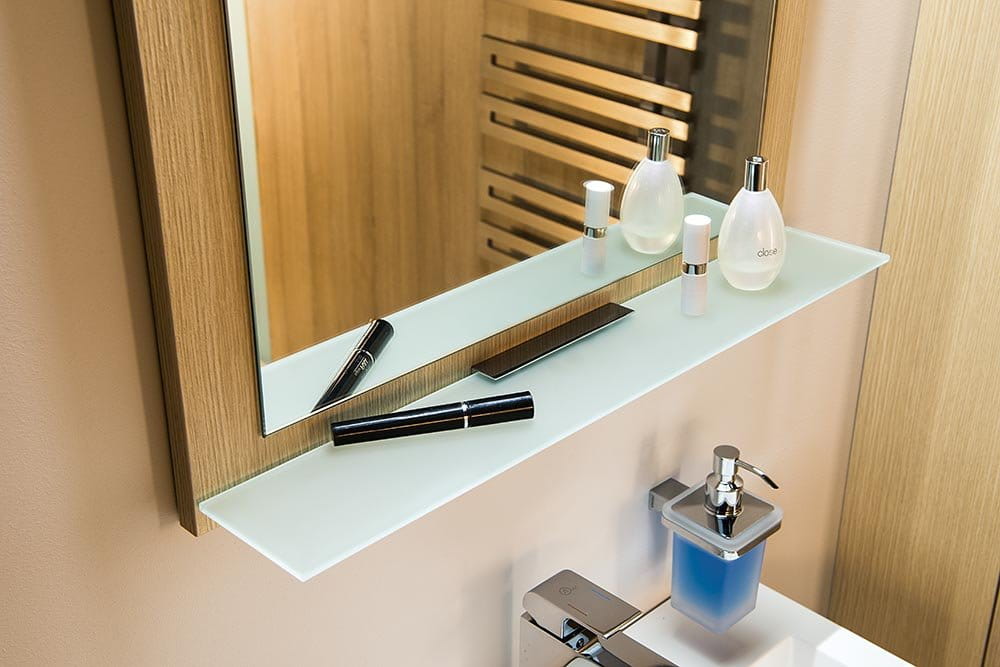 Lustro łazienkowe z serii TREOS wykonane jest z mdf/laminatu w kolorze brązowym.