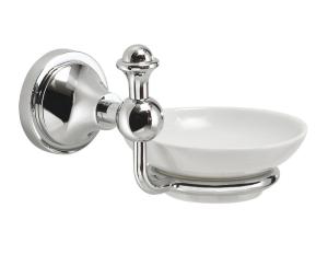 Mydelniczka ceramiczna z chromowanym uchwytem. Przeznaczona do montażu na ścianie.
