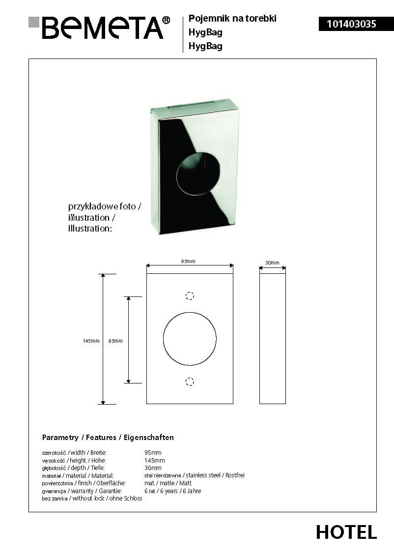 NEO Pojemnik na torebki higieniczne HygBag, matowy 101403035 Bemeta