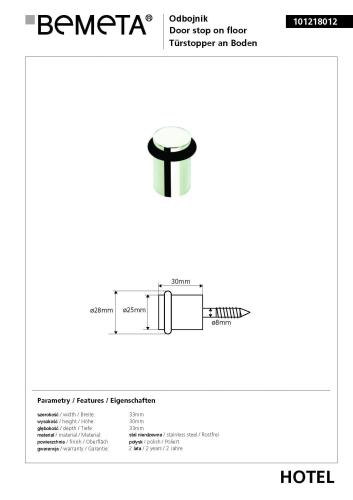 Odbojnik drzwiowy podłogowy chromowany połysk 101218012 Bemeta