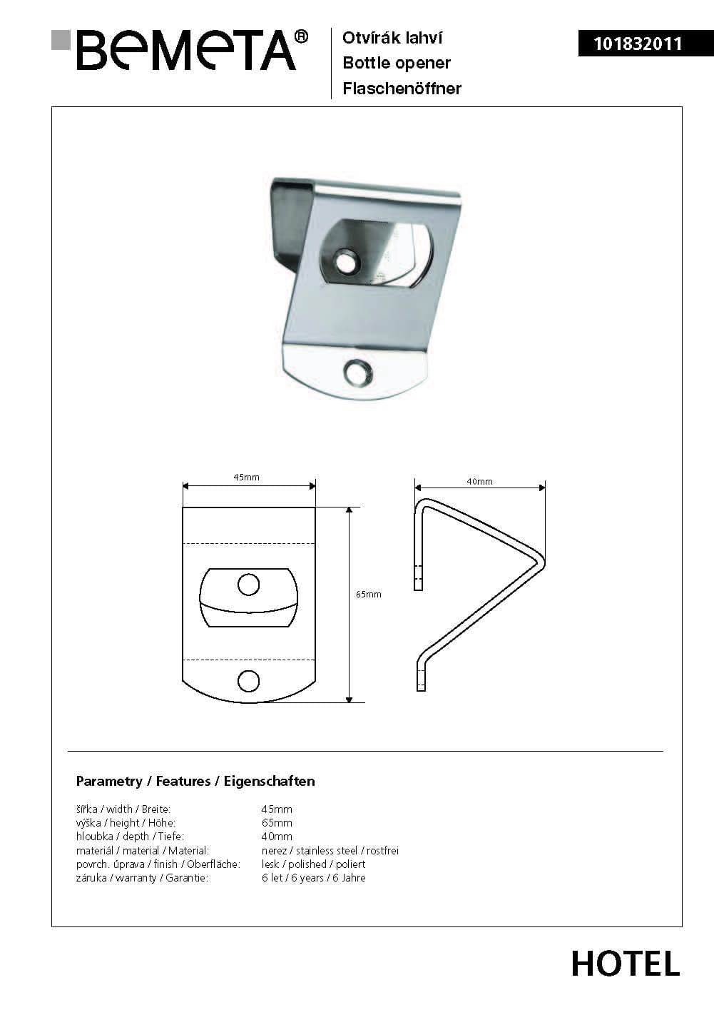 Otwieracz do butelek naścienny stal nierdzewna połysk 101832011 Bemeta