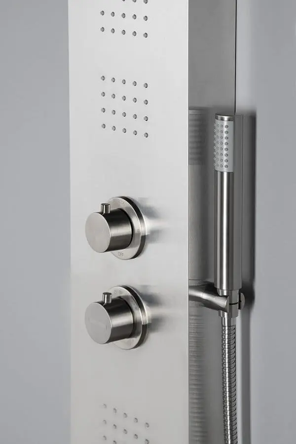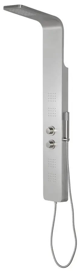 Prysznic w nowoczesnej łazience dopełnia elegancki panel prysznicowy, który w odróżnieniu od klasycznej baterii, oferuje wybór strumienia wody nie tylko z główki prysznicowej, ale również z głowicy prysznicowej i pryszniców bocznych. Panel prysznicowy z hydromasażem PRESTIGE wykonany jest ze szczotkowanej stali nierdzewnej. Jego korpus ma wbudowaną baterię dźwigniową, w tym zawory do wyboru trybu prysznica. Panel przeznaczony jest do montażu na płaskiej ścianie. Głowica prysznicowa może uruchomić symulację deszczu bezpośrednio nad Twoją głową. Następnie dokończysz czyszczenie praktycznym prysznicem ręcznym, który jest sprytnie przymocowany z boku.
