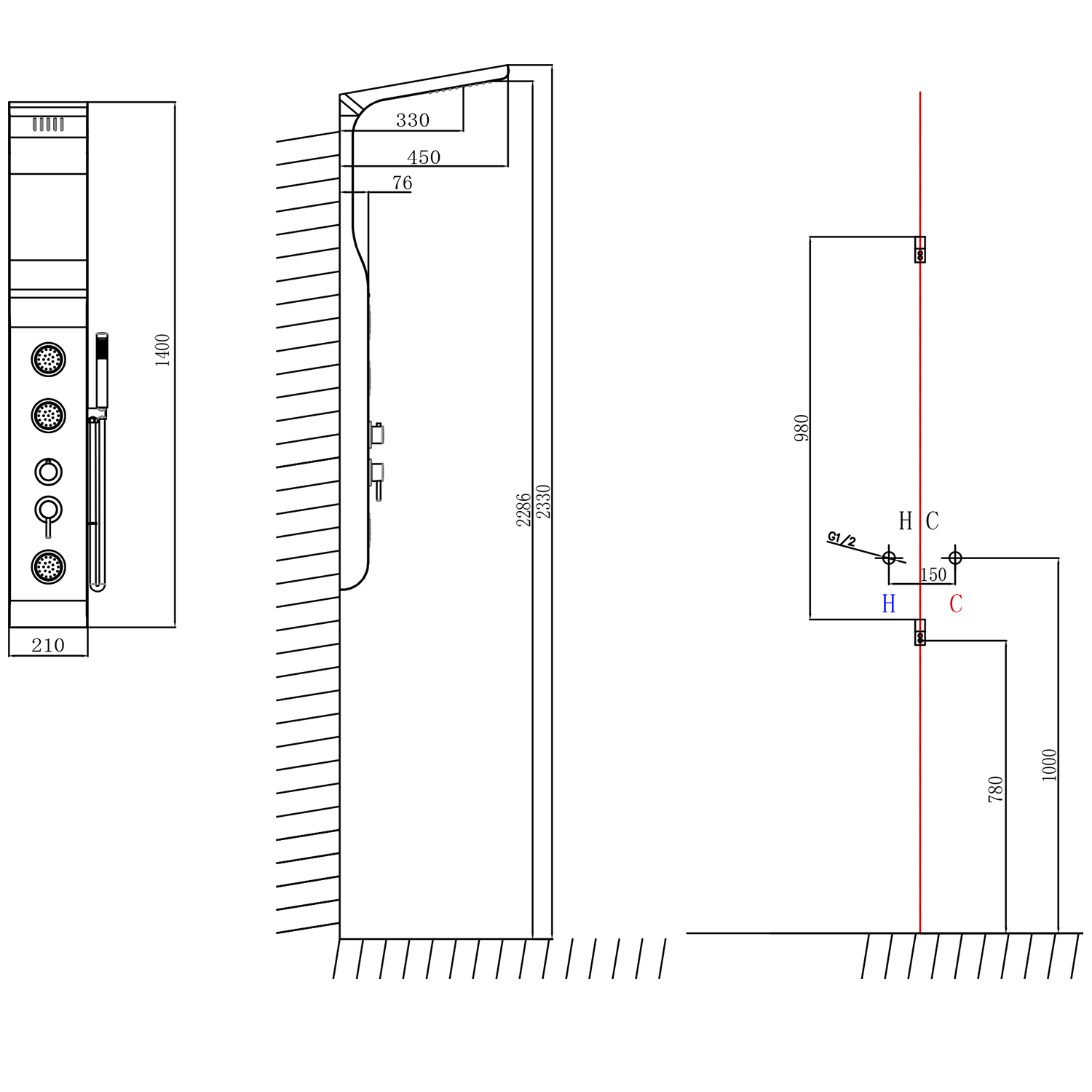 Panel prysznicowy z baterią biały YUKI SL290 Aqualine