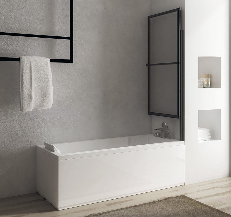 Dwu-częściowy parawan nawannowy unoszony pneumatycznie, rozsuwany.Atrakcyjny wizualnie i bardzo praktyczny w użyciu. Dzięki takiej osłonie cała łazienka pozostanie sucha, gdyż parawan chroni ją przed zamoczeniem. Bardzo ułatwia również skorzystanie z prysznica. Wanna wraz z parawanem może służyć bowiem jako natrysk.