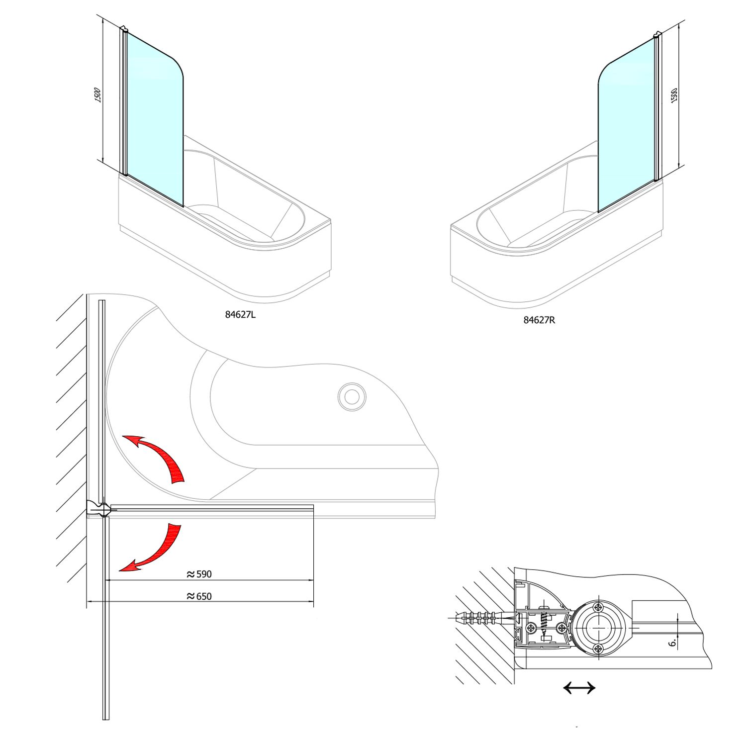 SPERA 65 BS-65 Kabina nawannowa klasyczna (parawan nawannowy) 84627 rysunek techniczny