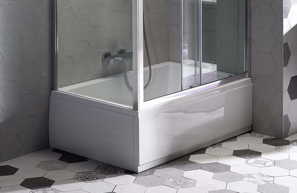 Akrylowa obudowa narożna PLAIN Prawa, 110x90 cm. Pasuje do brodzika:
