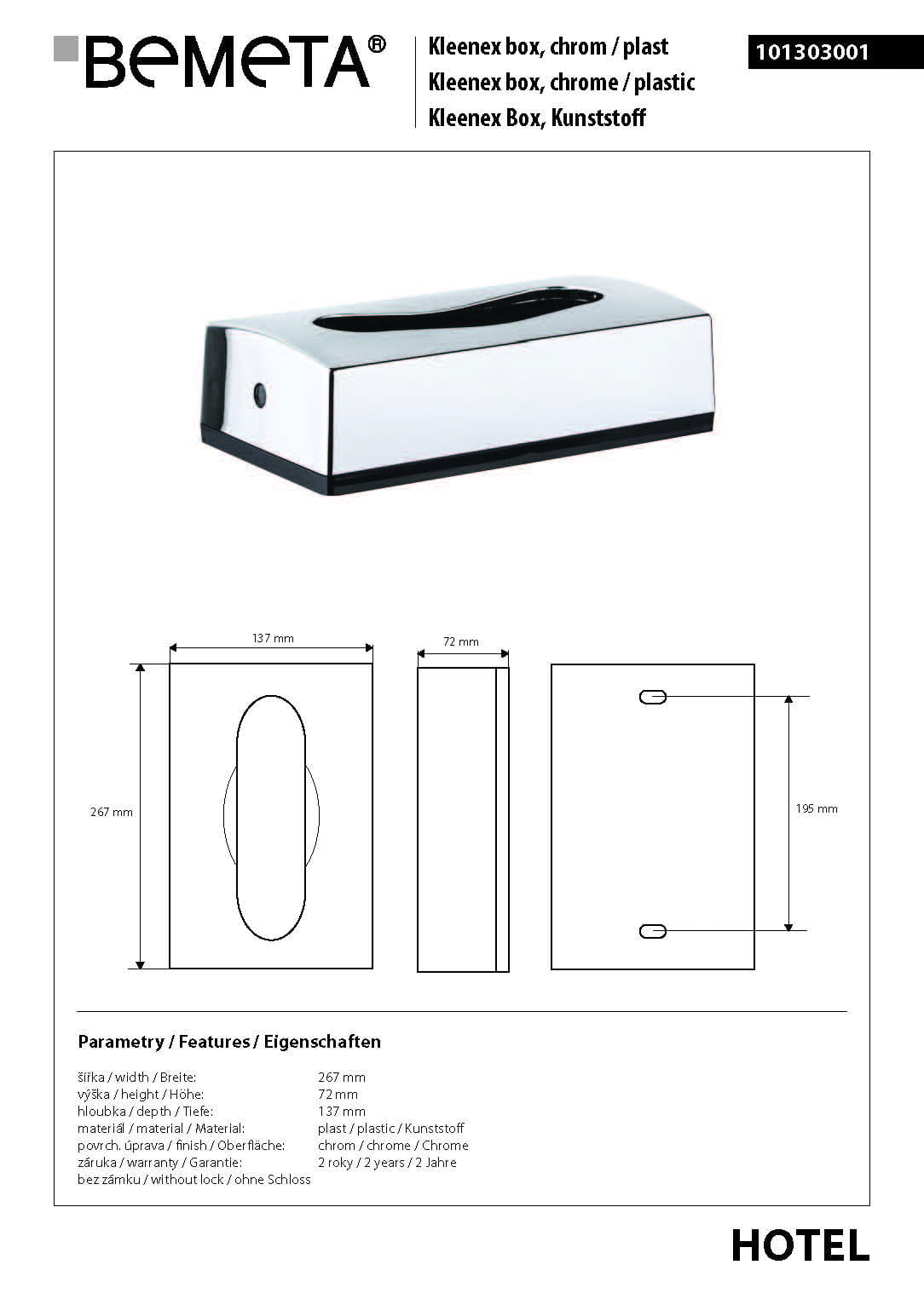 Pojemnik na chusteczki higieniczne połysk 101303001 Bemeta