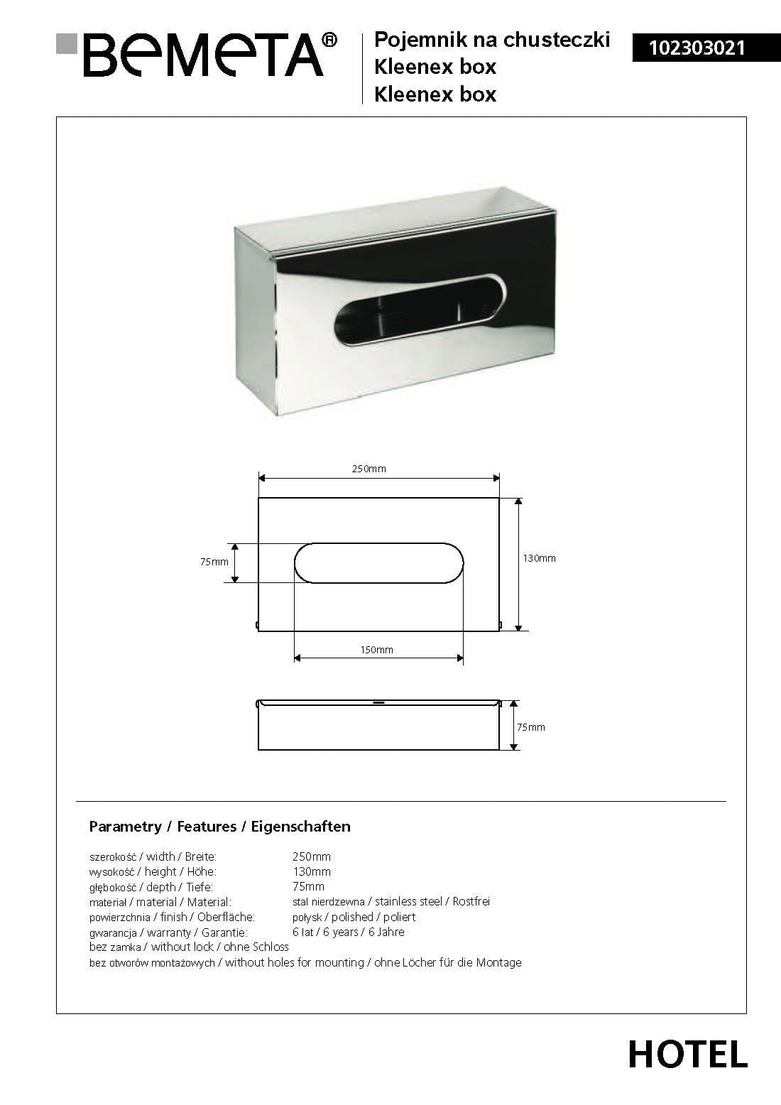 Pojemnik na chusteczki higieniczne połysk 102303021 Bemeta
