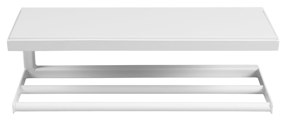 Półka łazienkowa wykonana ze stali z półką mdf (deska jest luźno włożona w profilu, można ją zastąpić dowolną deską) w kolorze białym. Wymiary 45x14x16 cm.