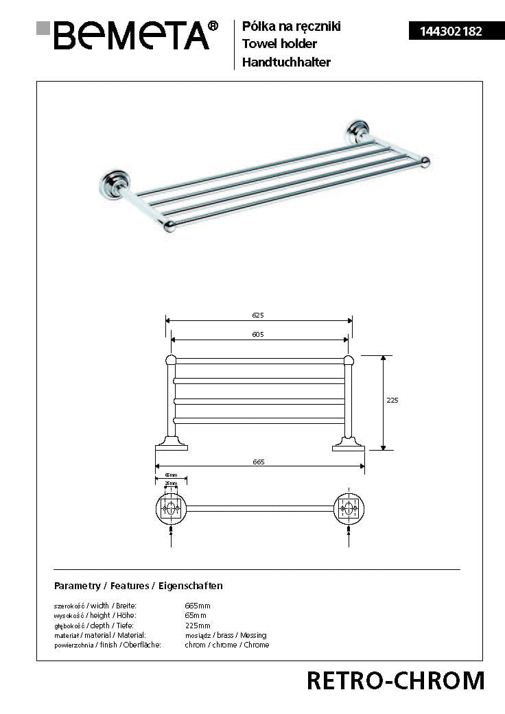 Półka na ręczniki 60,5 cm chrom połysk RETRO 144302182 Bemeta
