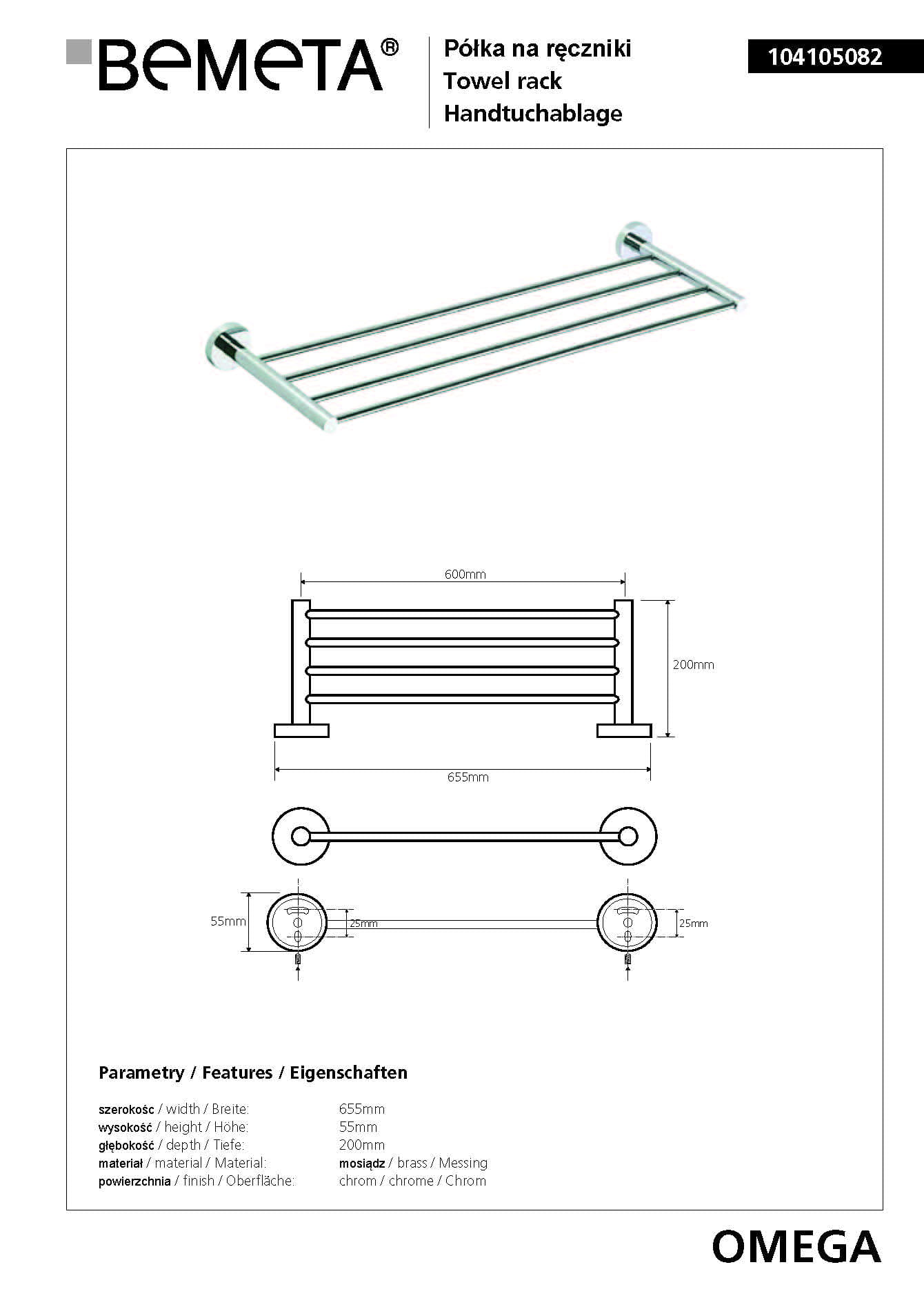 Półka na ręczniki 65,5 cm OMEGA 104105082 Bemeta wymiary
