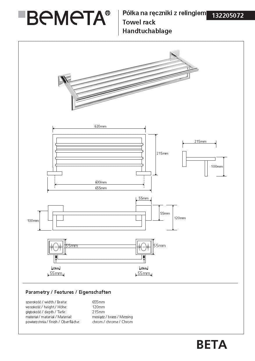 Półka na ręczniki z relingiem 65,5 cm BETA 132205072 Bemeta