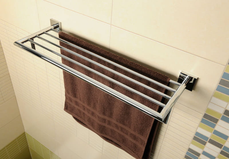 Półka na ręczniki z relingiem wykonana z mosiądzu, pokryta chromem w wykończeniu chrom połysk.