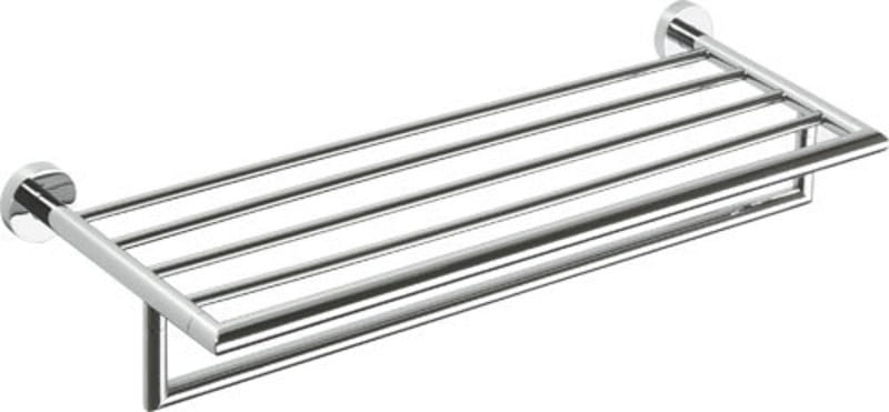 Półka na ręczniki z relingiem wykonana z mosiądzu, pokryta chromem w wykończeniu chrom połysk.