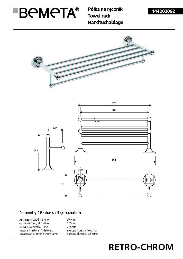 Półka na ręczniki z wieszakiem 60,5 cm chrom połysk RETRO 144302092 Bemeta