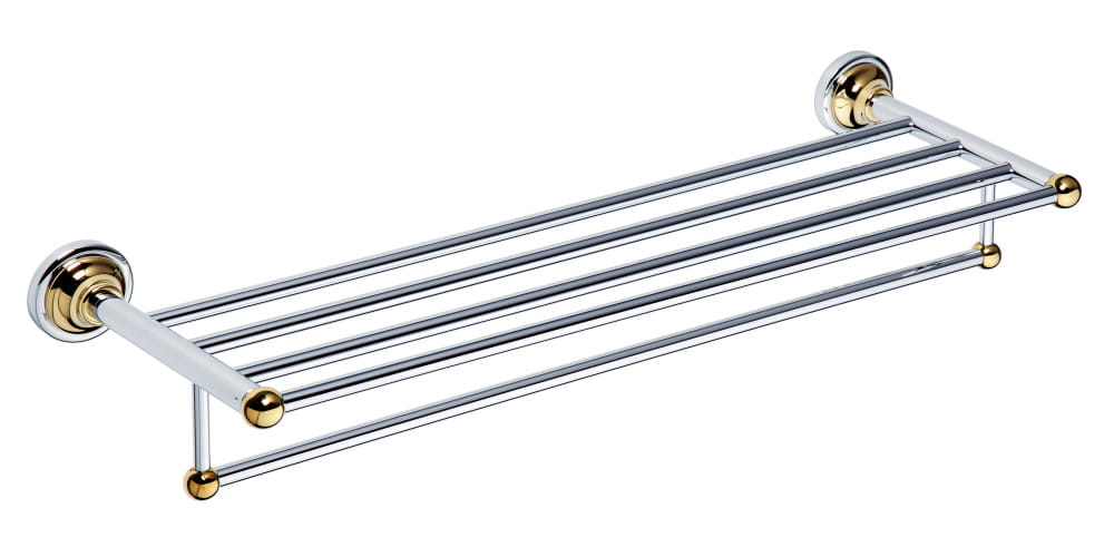 Półka na ręczniki z wieszakiem 60,5 cm wykonana z mosiądzu, pokryta chromem w wykończeniu chrom - złoto.