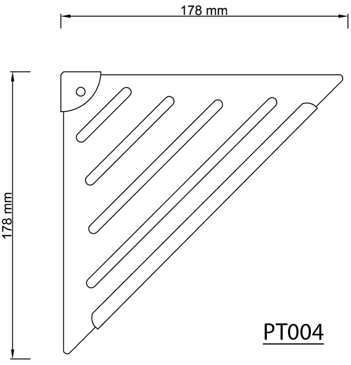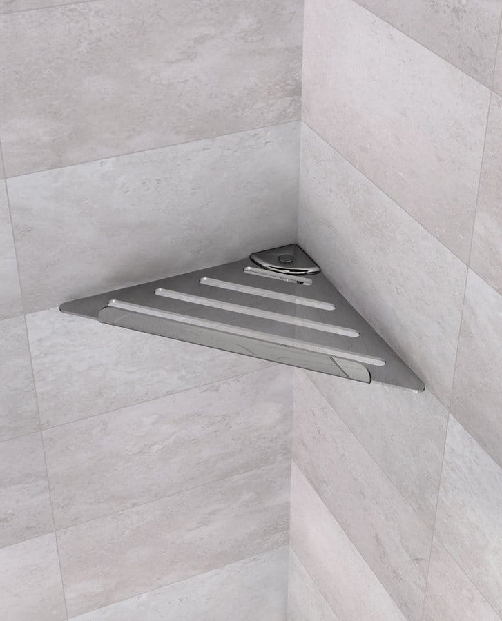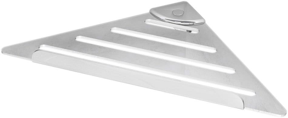 Półka narożna pod prysznic. Wykonana ze stali nierdzewnej. Narożnik półki wykonany z tworzywa ABS, pokryty chromem.