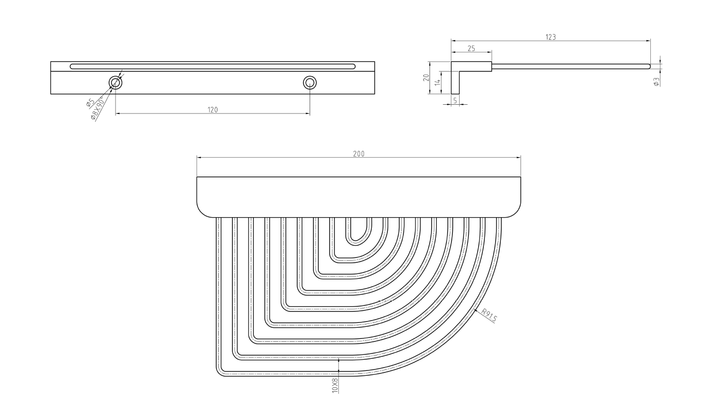 Pólka narożna. Wykonana z drutu mosiężnego. Wymiar: 20x2x12,3 cm.