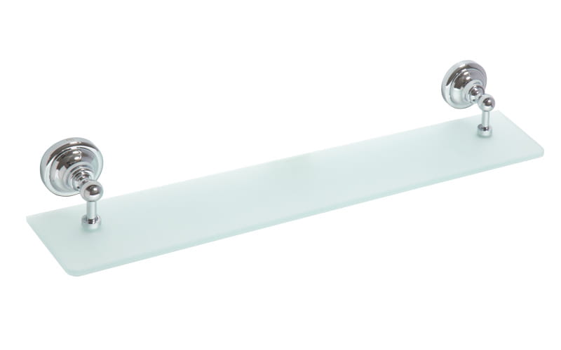 Półka szklana wykonana z mosiądzu, pokryta chromem w wykończeniu chrom połysk. Szkło mleczne.