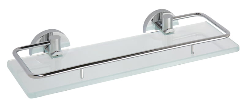 Uchwyty półki wykonane z mosiądzu, pokryte chromem w wykończeniu chrom połysk. Szkło półki - mleczne.