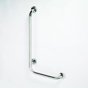 Poręcz kątowa mocowana do ściany, lewa, wykonana ze stali nierdzewnej.