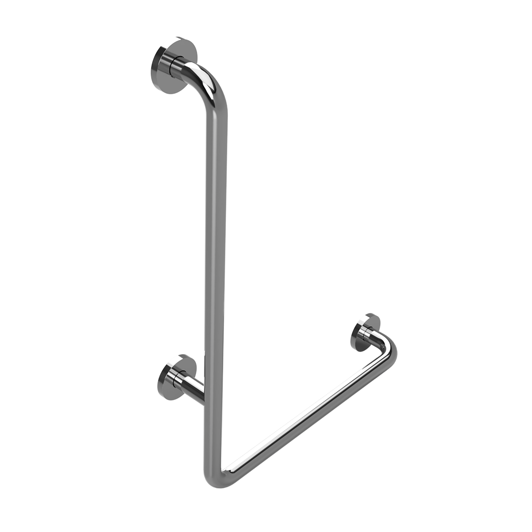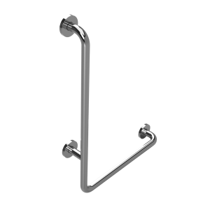 Poręcz kątowa mocowana do ściany, prawa, wykonana ze stali nierdzewnej.