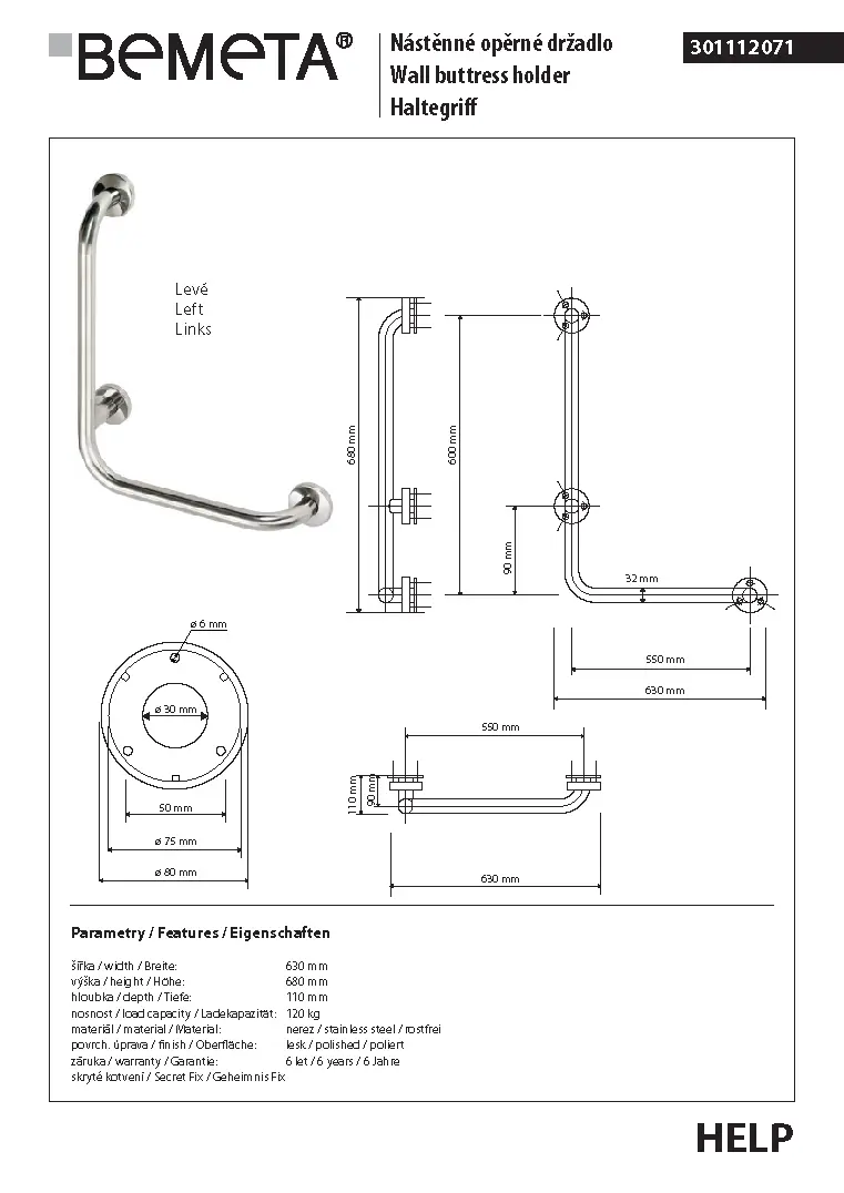 Produkty z serii HELP są certyfikowane jak również odpowiadają polskim normom prawnym dotyczącym instalacji produktów do pomieszczeń bezbarierowych. Wszystkie uchwyty w połączeniu z innymi produktami z serii HELP umożliwiają łatwe poruszanie i przyjazna atmosferę w pomieszczeniu. Projektując wyposażenie higieniczne mieszkań czy domów, należy również wziąć pod uwagę możliwość samodzielnego poruszania się niepełnosprawnych współobywateli. Wykończenie powierzchni uchwytów można dostosować do potrzeb klienta w wersji białej, nierdzewnej lub piaskowanej. Uchwyty wykonane są ze stali nierdzewnej o średnicy 32 mm