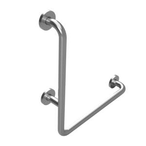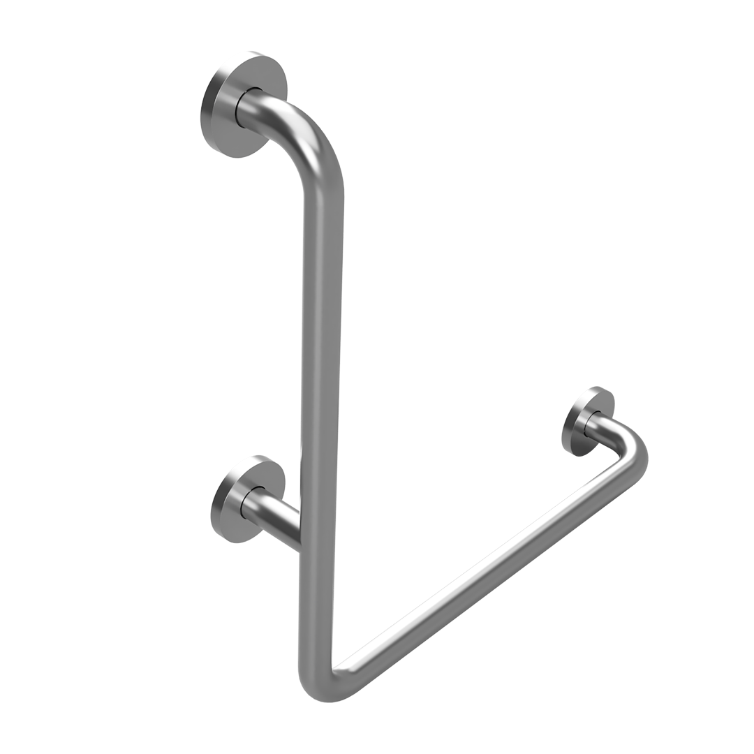Poręcz kątowa mocowana do ściany, prawa, wykonana ze stali nierdzewnej szczotkowanej.