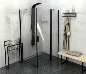 Czarna kabina prysznicowa profile matowe 120 x 90 x 195 cm ELITE BLACK S120BF90B Sanotechnik