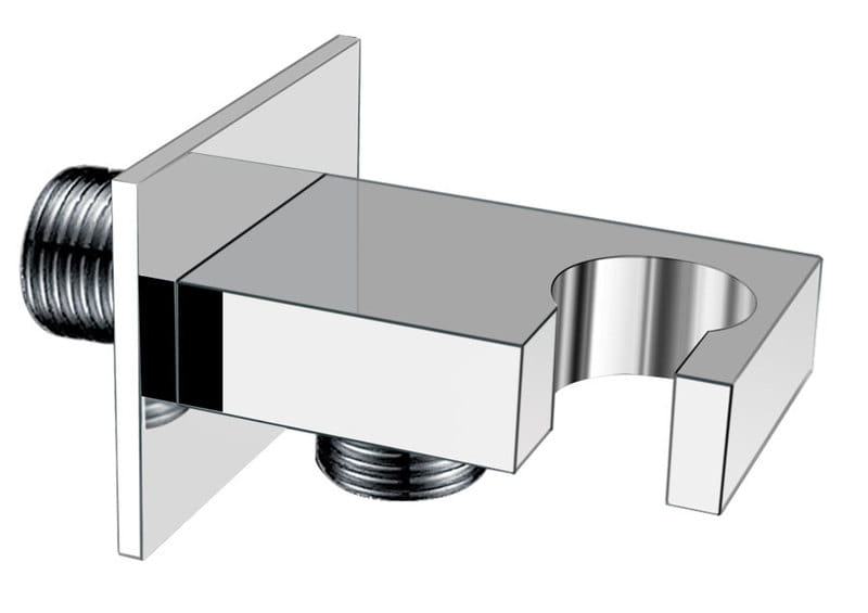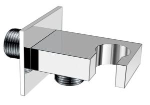 Przyłącze kątowe mosiężne z uchwytem na rączkę prysznicową.