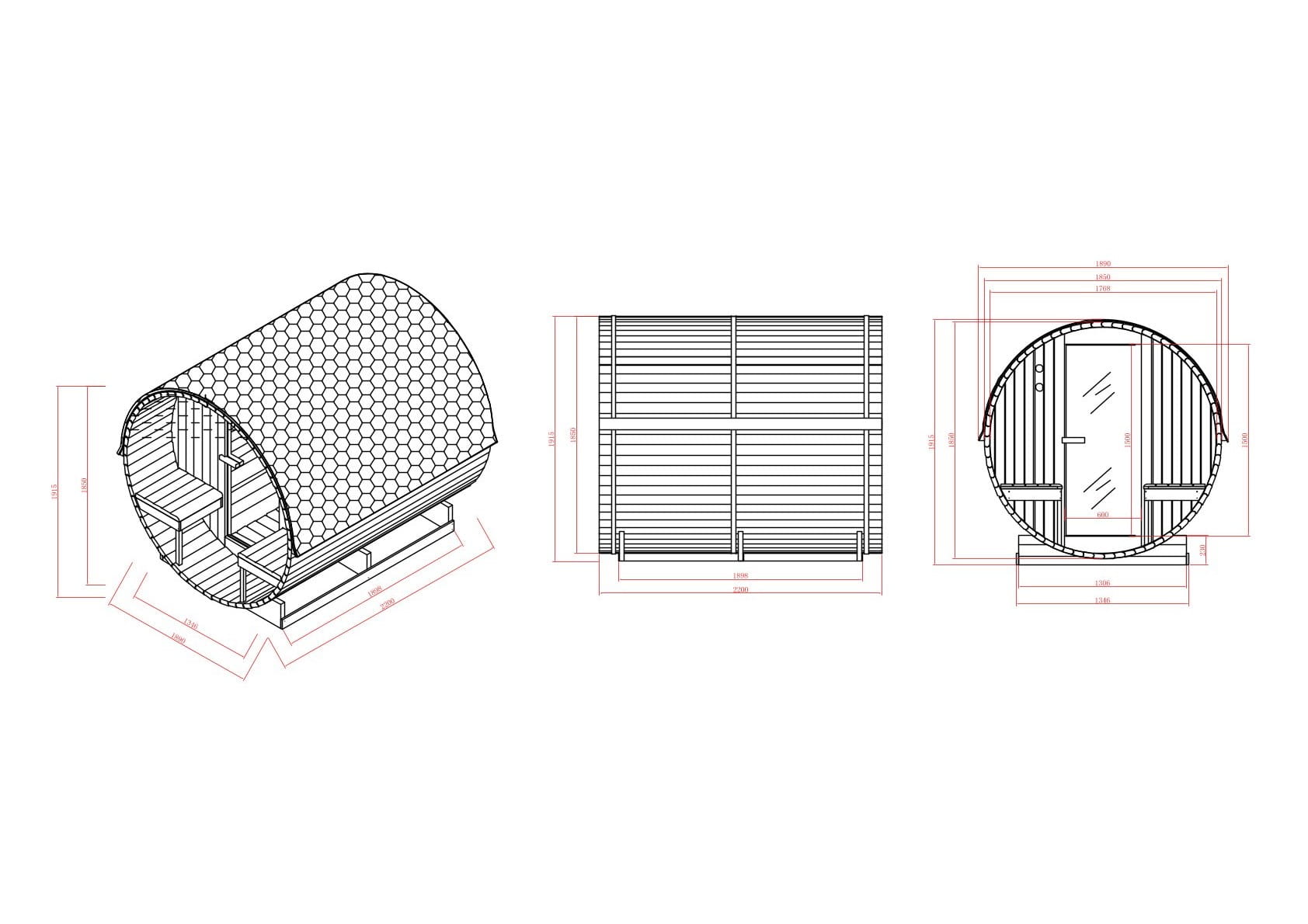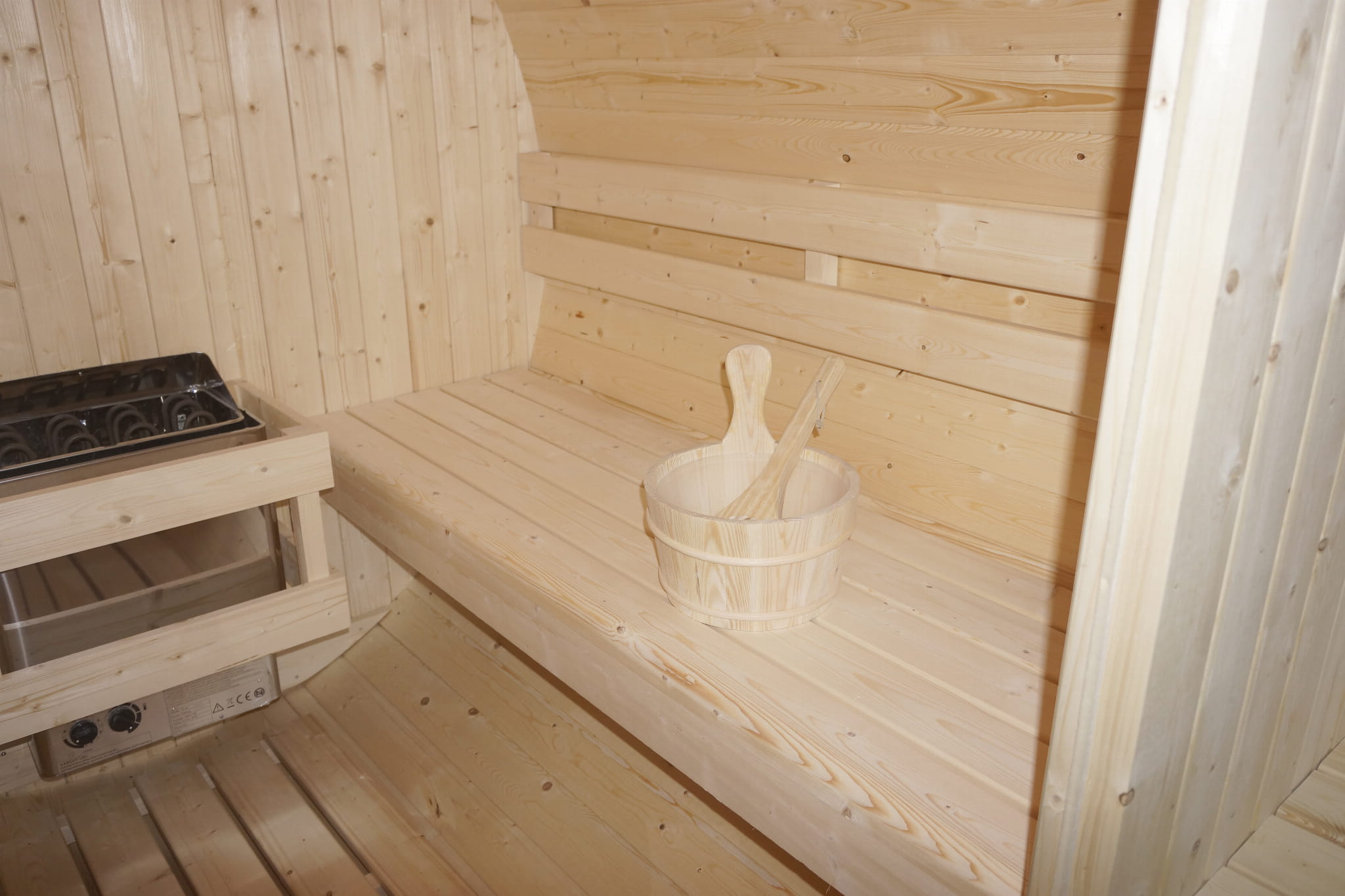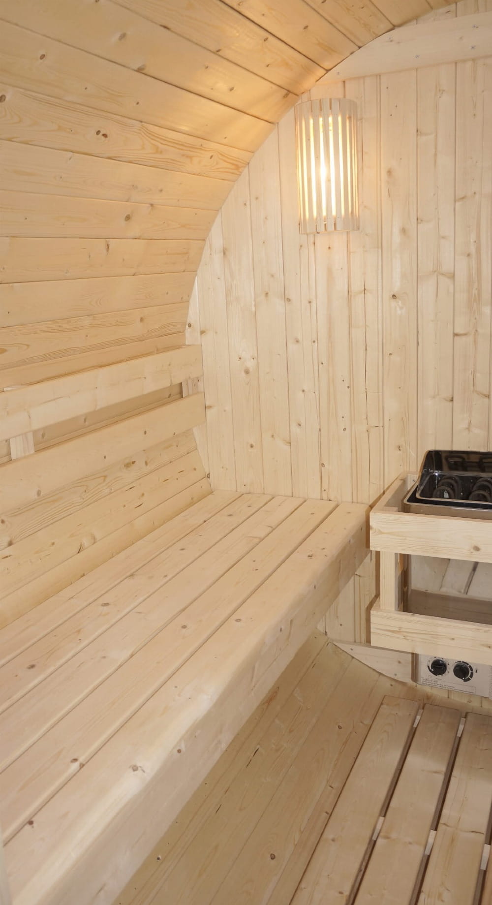 BERGEN F70220 to stylowa i funkcjonalna sauna fińska na świeżym powietrzu, przeznaczona dla 4 osób. Jej charakterystyczny, beczkowaty kształt oraz naturalne wykończenie ze świerku tworzą wyjątkowe połączenie tradycji i nowoczesnego komfortu. Idealna do relaksu w ogrodzie, przez cały rok.