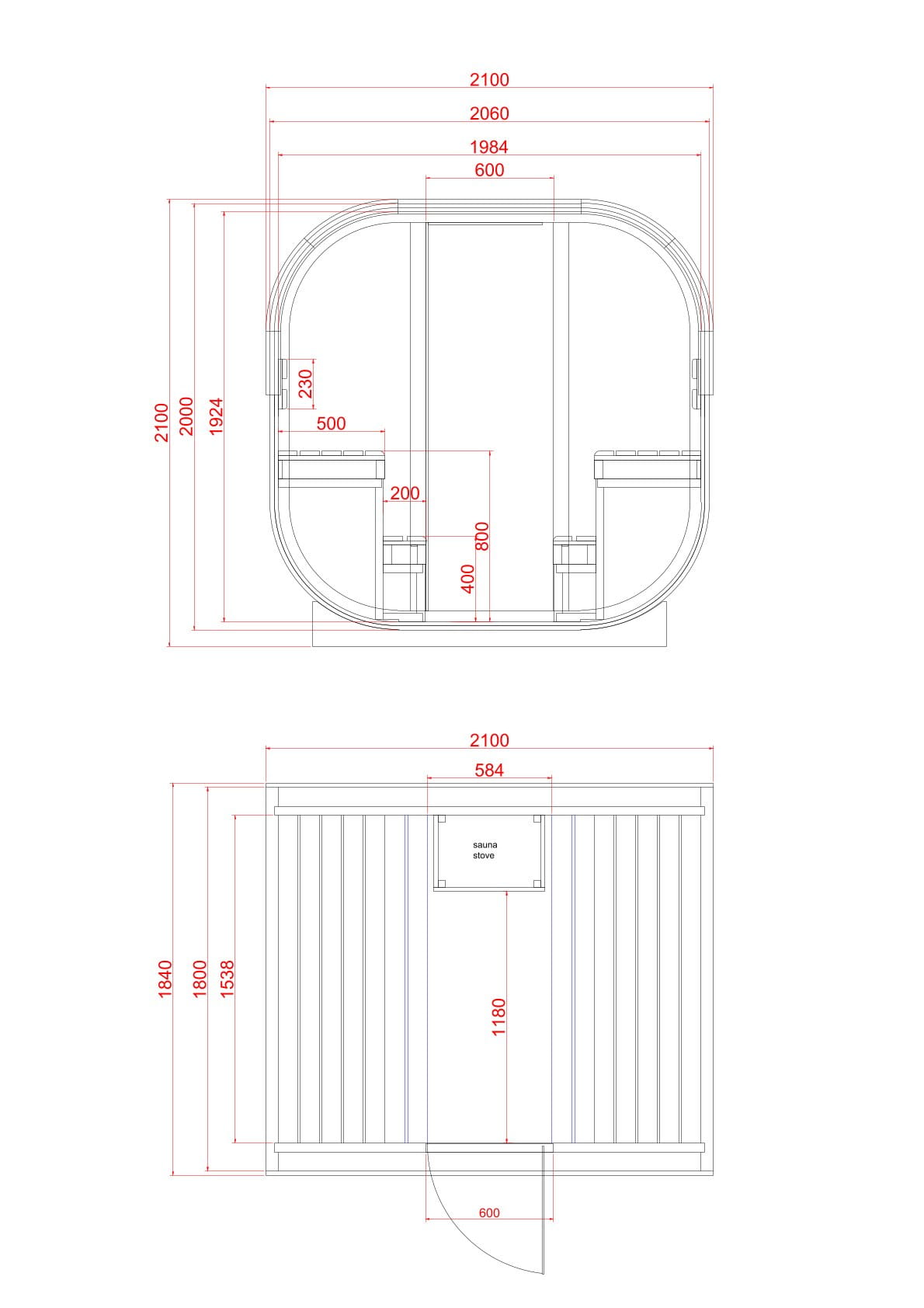 - Wymiary zewnętrzne 210 x 180 x 210 cm