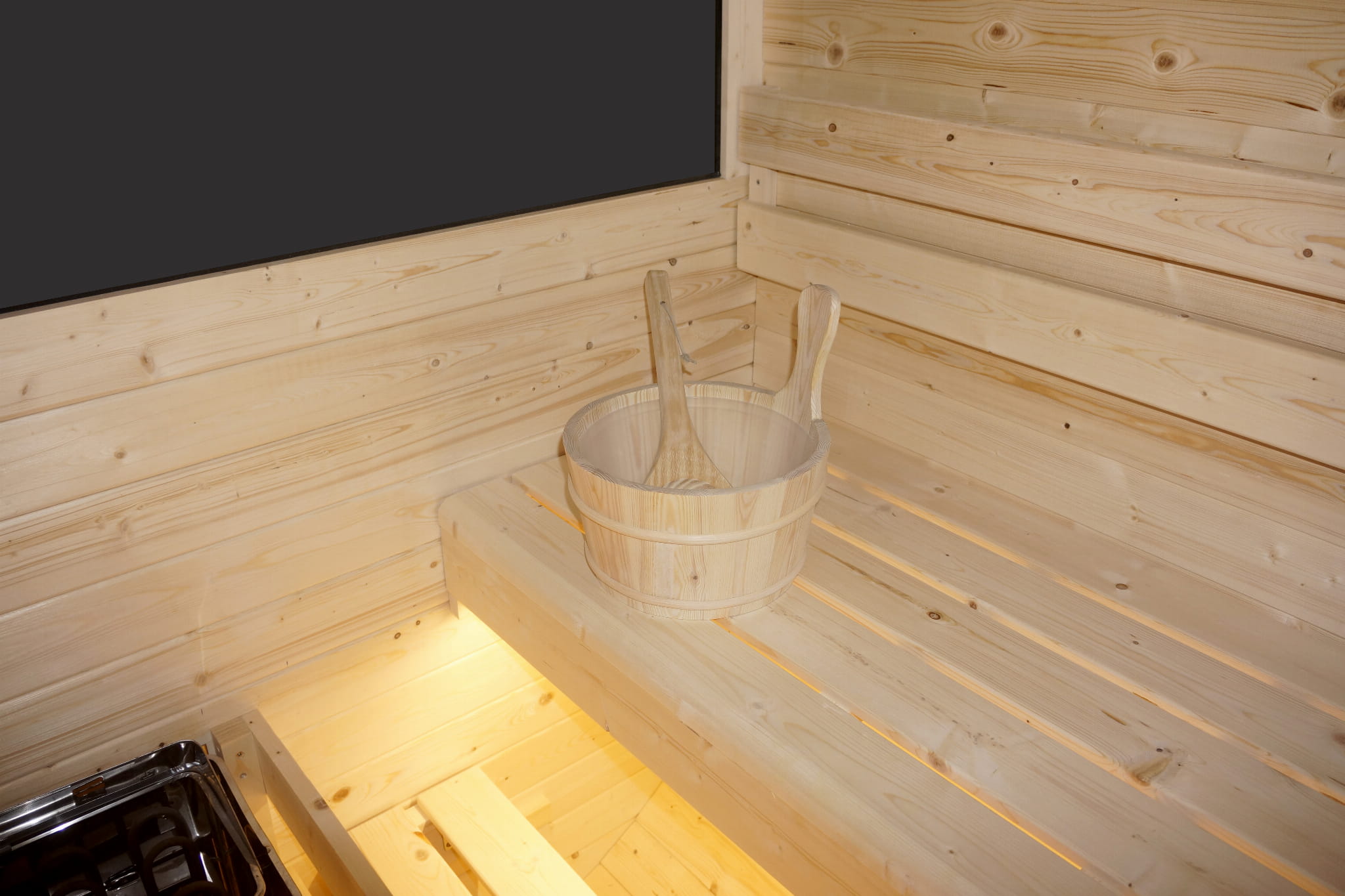 - Moc pieca: 8 kW – szybkie nagrzewanie wnętrza sauny