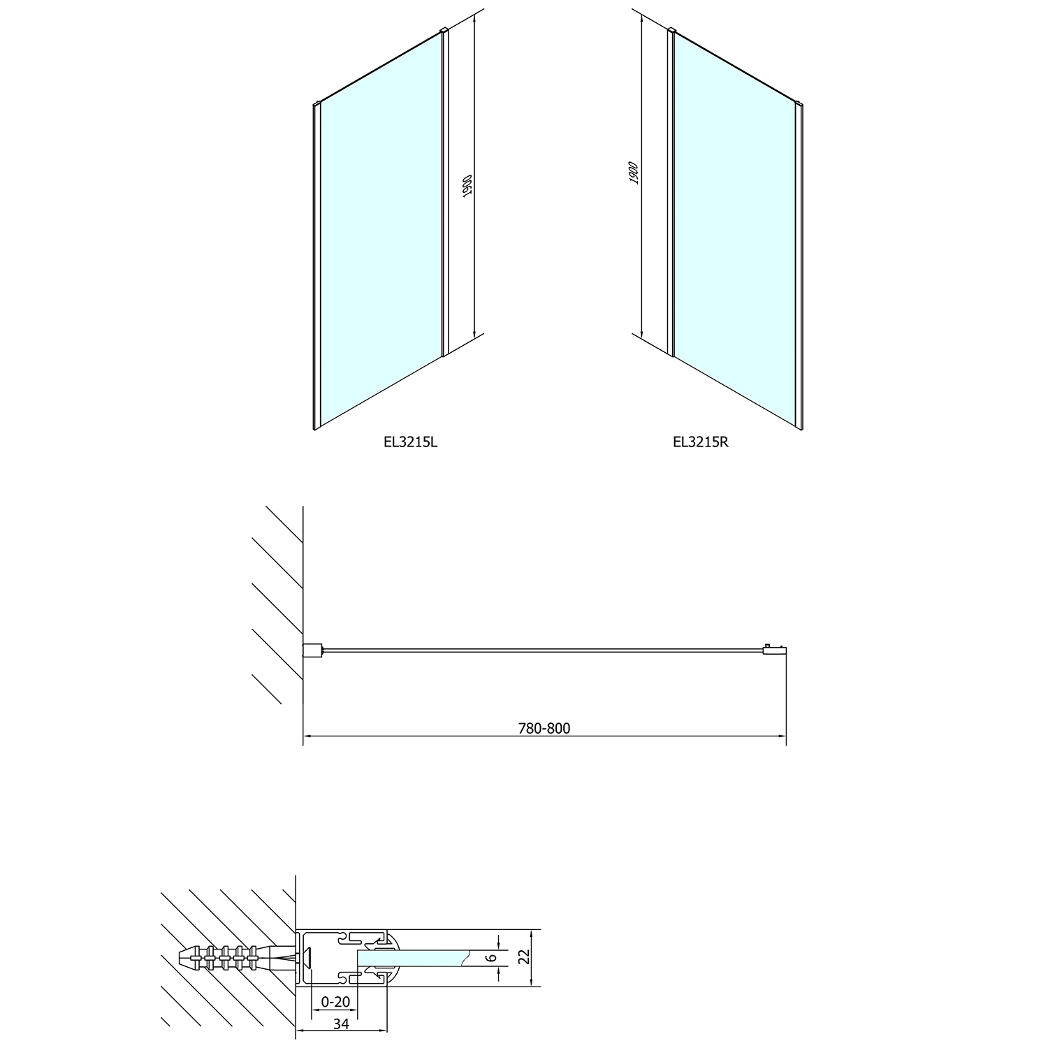 Ścianka prysznicowa 80 x 190 boczna szkło czyste EASY EL3215 Polysan