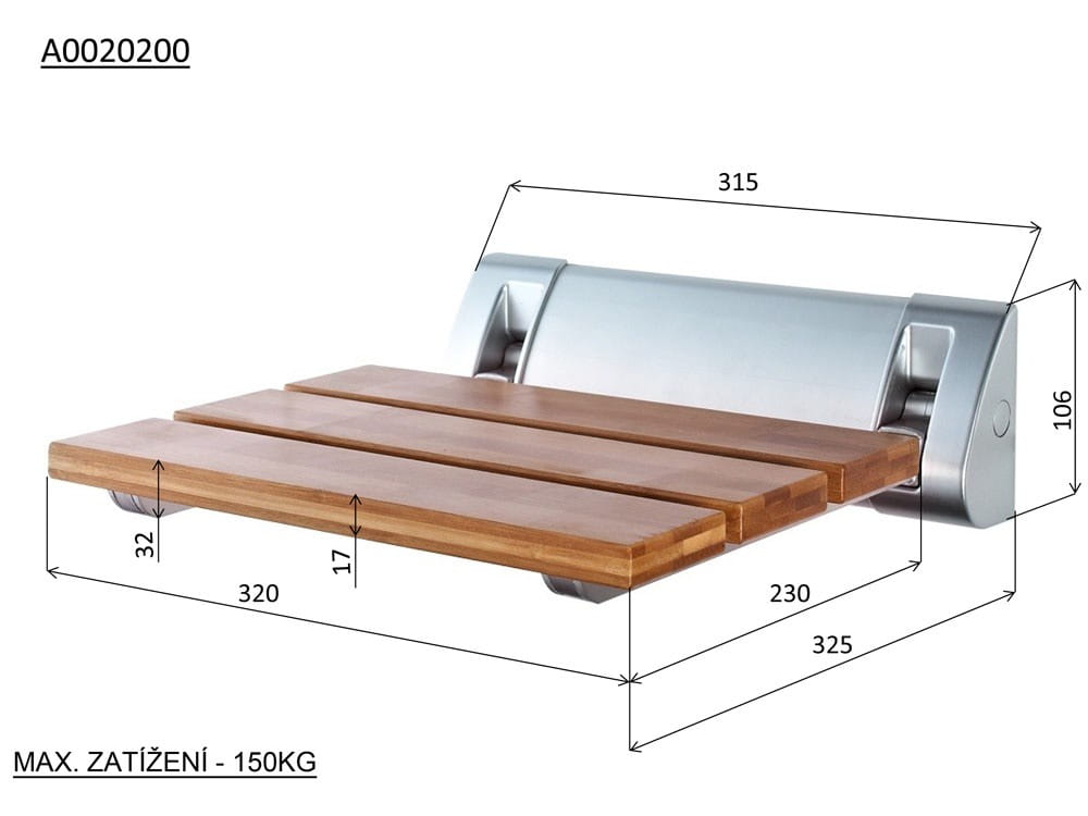 Siedzisko prysznicowe 32x32,5 cm bambusowe AE236 Aqualine