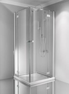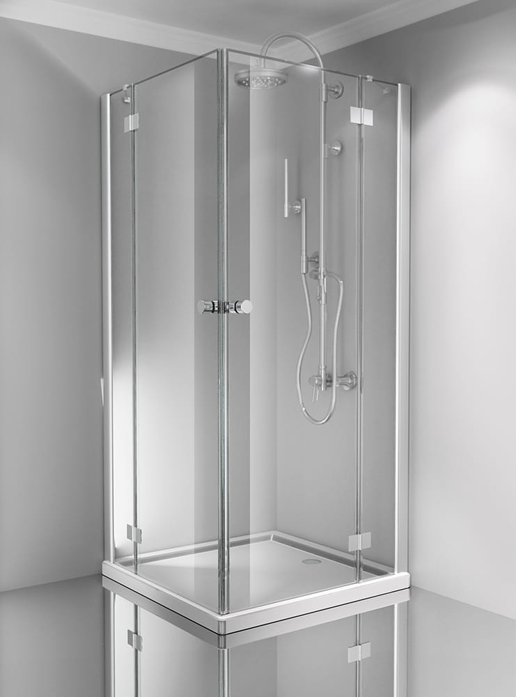 Kabina składa się z drzwi skrzydłowych lewych i prawych. Zdjęcie przedstawia przykładowe zestawienie kabiny o równych ścianach.