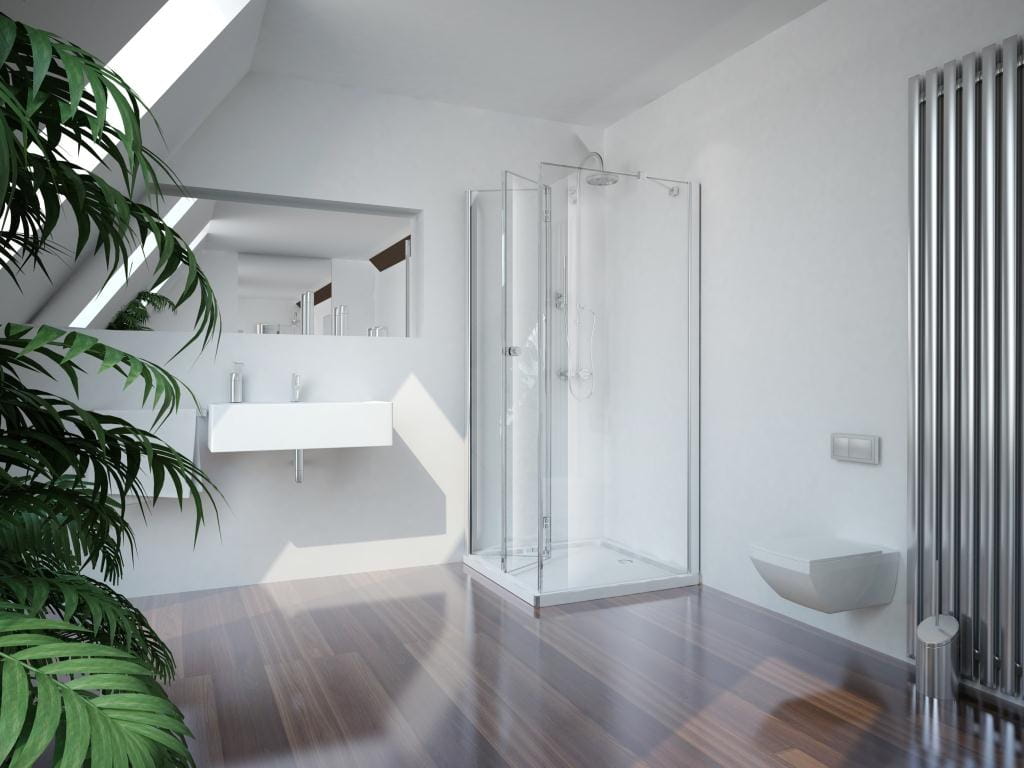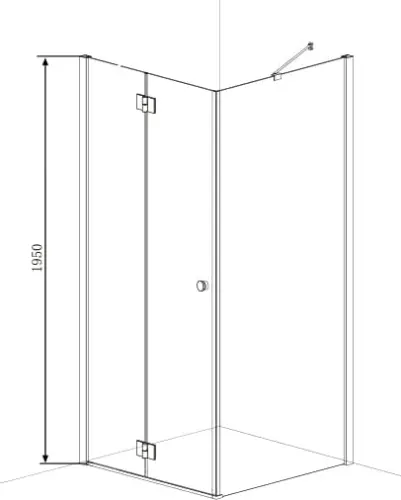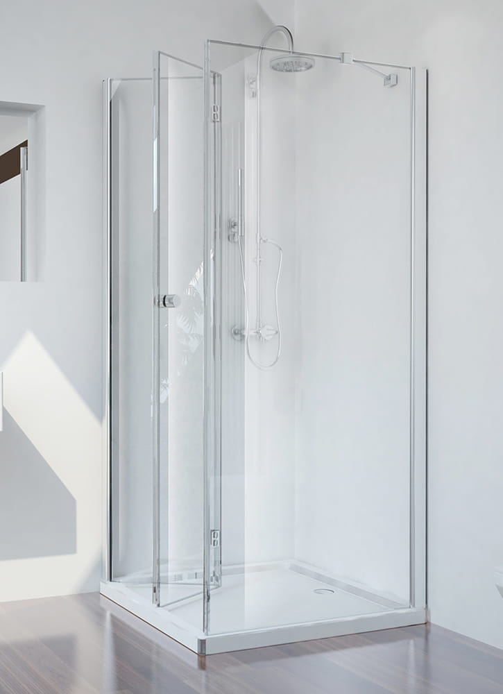 Kabina składa się z drzwi składanych lewych i ścianki stałej. Zdjęcie przedstawia przykładowe zestawienie kabiny o równych ścianach.